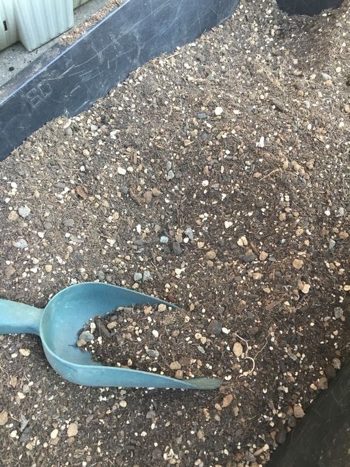 この土では昨年ゴーヤを栽培していました。しかも、この土自体が再利用したもので何年も資材を投入しつつ再利用しています。